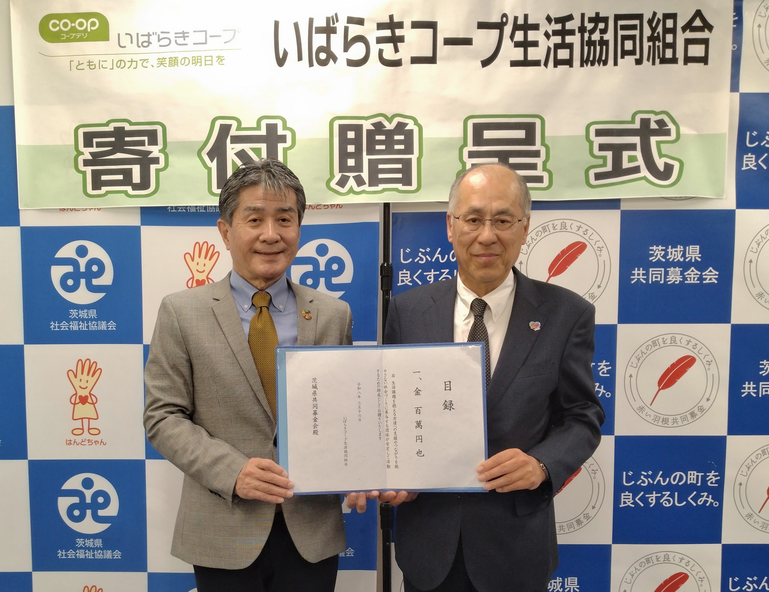 いばらきコープ様から「はがき・切手回収キャンペーン」によるご寄付をいただきました
