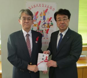 12月12日(金)、社会福祉法人欣水会(特別養護老人ホーム滝の園:土浦市宍塚)様から、令和7年度共同募金に寄付をいただきました。