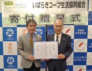 令和8年3月16日(月)、いばらきコープ生活協同組合様(小美玉市西郷地)から、令和7年度の共同募金にご寄付をいただきました。